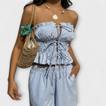 • Krój: Wysoki stan, bez ramiączek: Wysoki krój bez ramiączek podkreśla sylwetkę i oferuje nowoczesny wygląd.