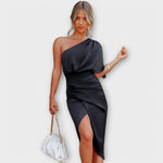 Elegancka sukienka wieczorowa Élise to idealny wybór dla kobiet poszukujących czystej elegancji. Płynna tkanina luksusowo otula Twoją sylwetkę, podczas gdy wyrafinowany krój podkreśla Twoją elegancję. Idealna na gale, eleganckie kolacje i specjalne okazje – ta sukienka z pewnością przyciągnie uwagę.