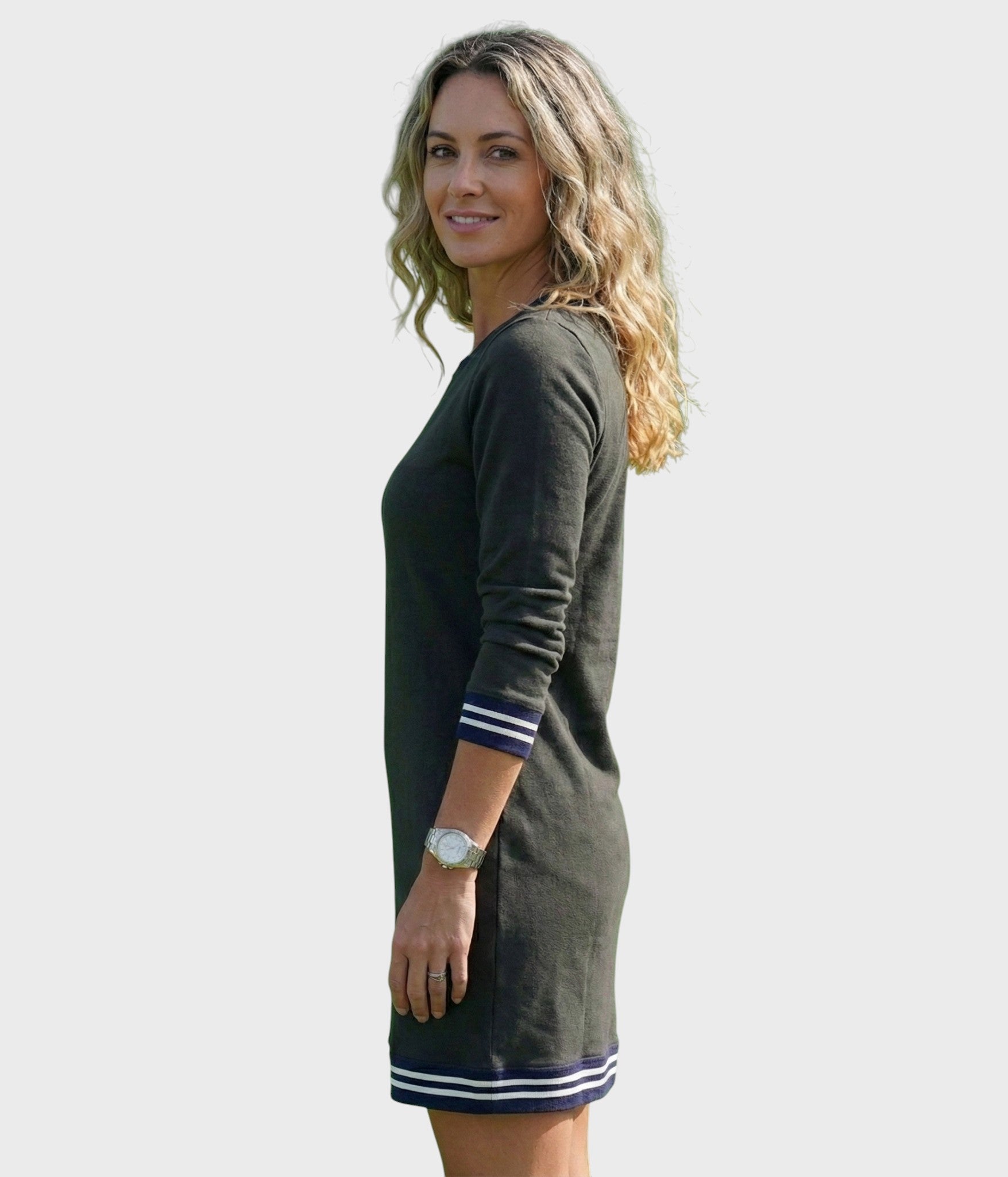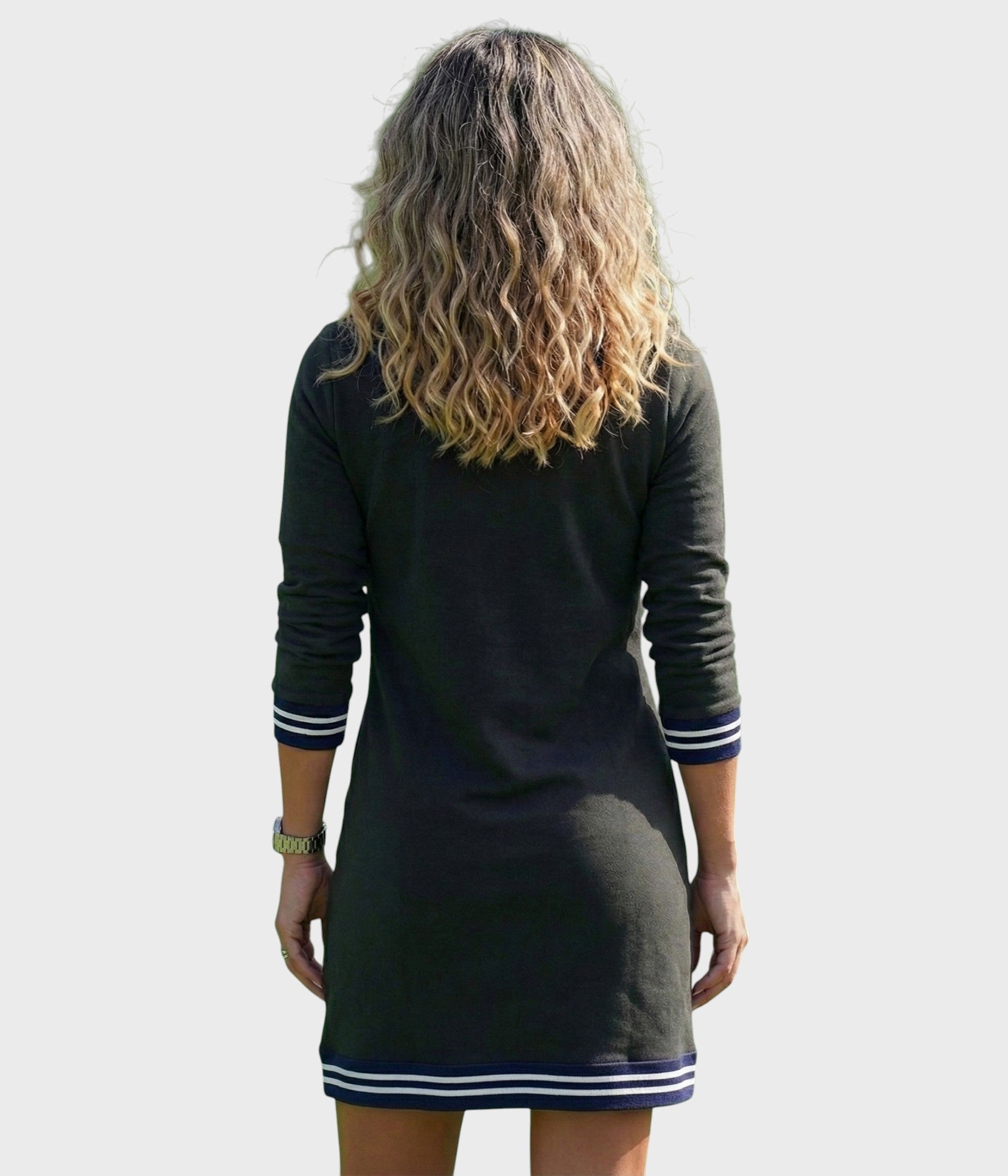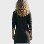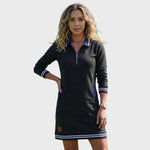 Model Elise to fuzja sportowej estetyki i swobodnej miejskiej elegancji. Sukienka ta definiowana jest klasycznym krojem polo z metalowym półzamkiem, który umożliwia dostosowanie dekoltu. Konstrukcja opiera się na prostym, lekko luźnym profilu, który zapewnia maksymalny komfort podczas ruchu. Design uzupełniają ribbowe mankiety i wykończenie z kontrastowymi paskami, co nadaje odzieży graficzny i strukturalny wygląd. Funkcjonalnym detalem są zintegrowane przednie kieszenie, które nie zakłócają czystej sylwetki.