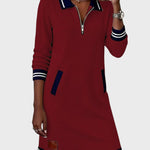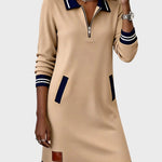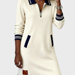 Elise | Sukienka dzianinowa z półzamkiem i kontrastowym wykończeniem