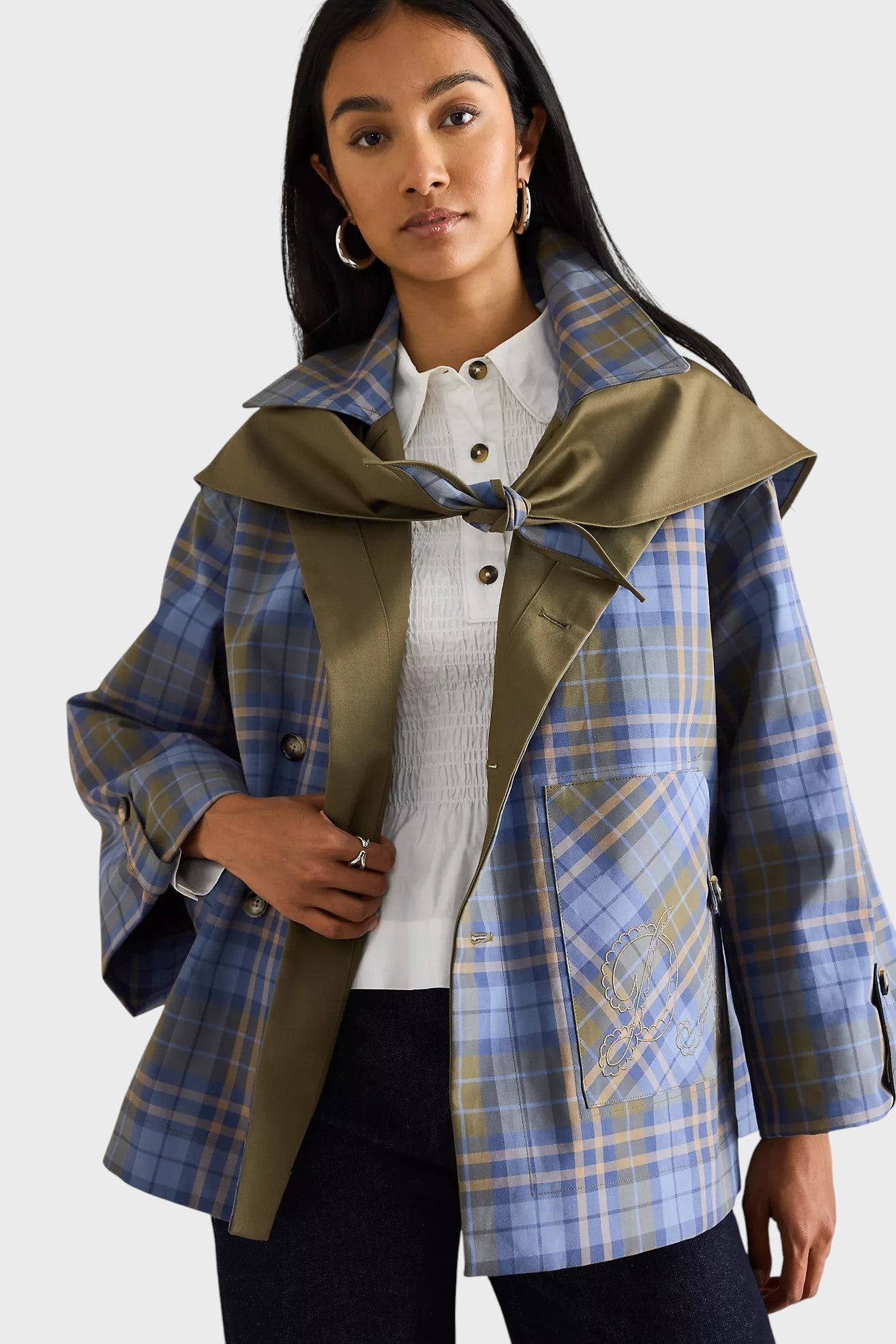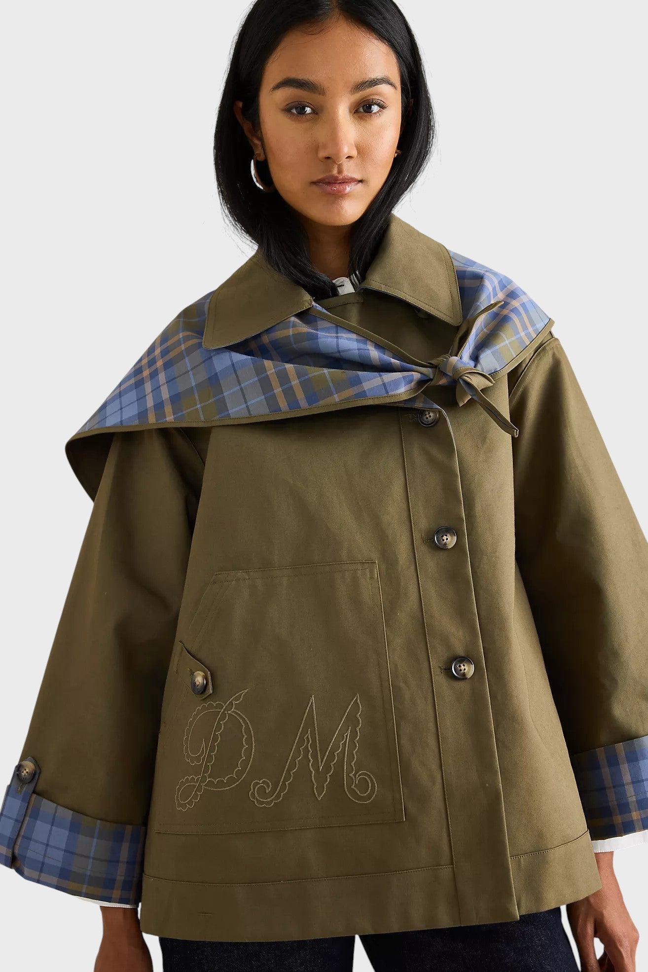 Beatrix | Bawełnowa pelerynowa kurtka w kratę