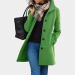 Płaszcz Klára łączy ponadczasową elegancję z praktycznością codziennego noszenia. Dzięki zapięciu na guziki, korzystnemu krojowi i ciepłemu materiałowi doskonale sprawdzi się zarówno na nieformalnych spacerach, jak i w biurze czy na wieczornych spotkaniach.