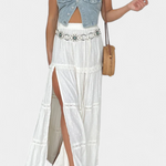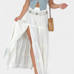 Daisy - Maxi boho spódnica z koronką i przednim rozcięciem
