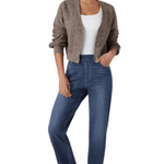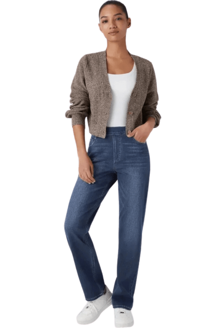 Karolína Eleganckie Dżinsy to eleganckie dżinsy z wysokim stanem, które oferują smukły krój, elastyczny materiał i całodzienną wygodę. Wysoki pas modeluje sylwetkę, materiał jest elastyczny, co zapewnia swobodę ruchów, a uniwersalny styl łatwo przechodzi między formalnym a codziennym noszeniem.