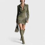 Rhea - Elegancka sukienka z zamszu z frędzlami