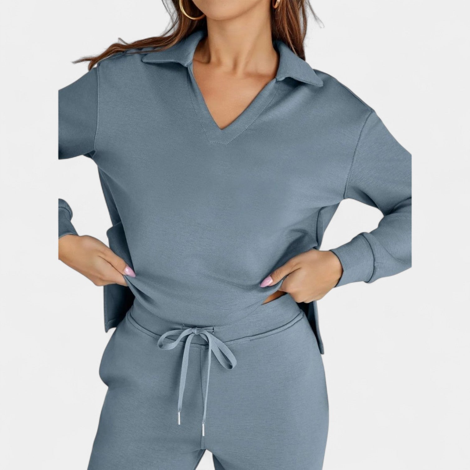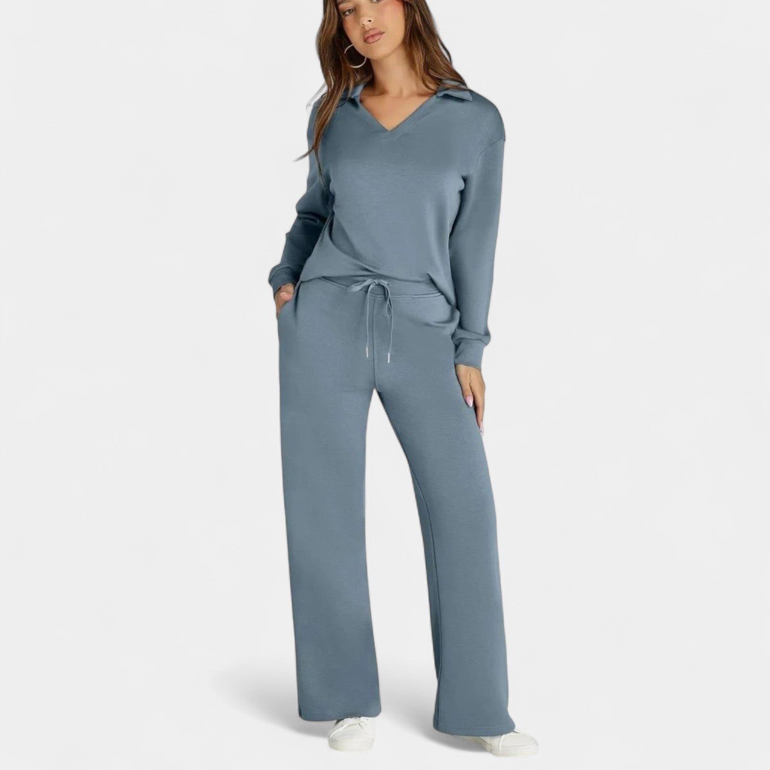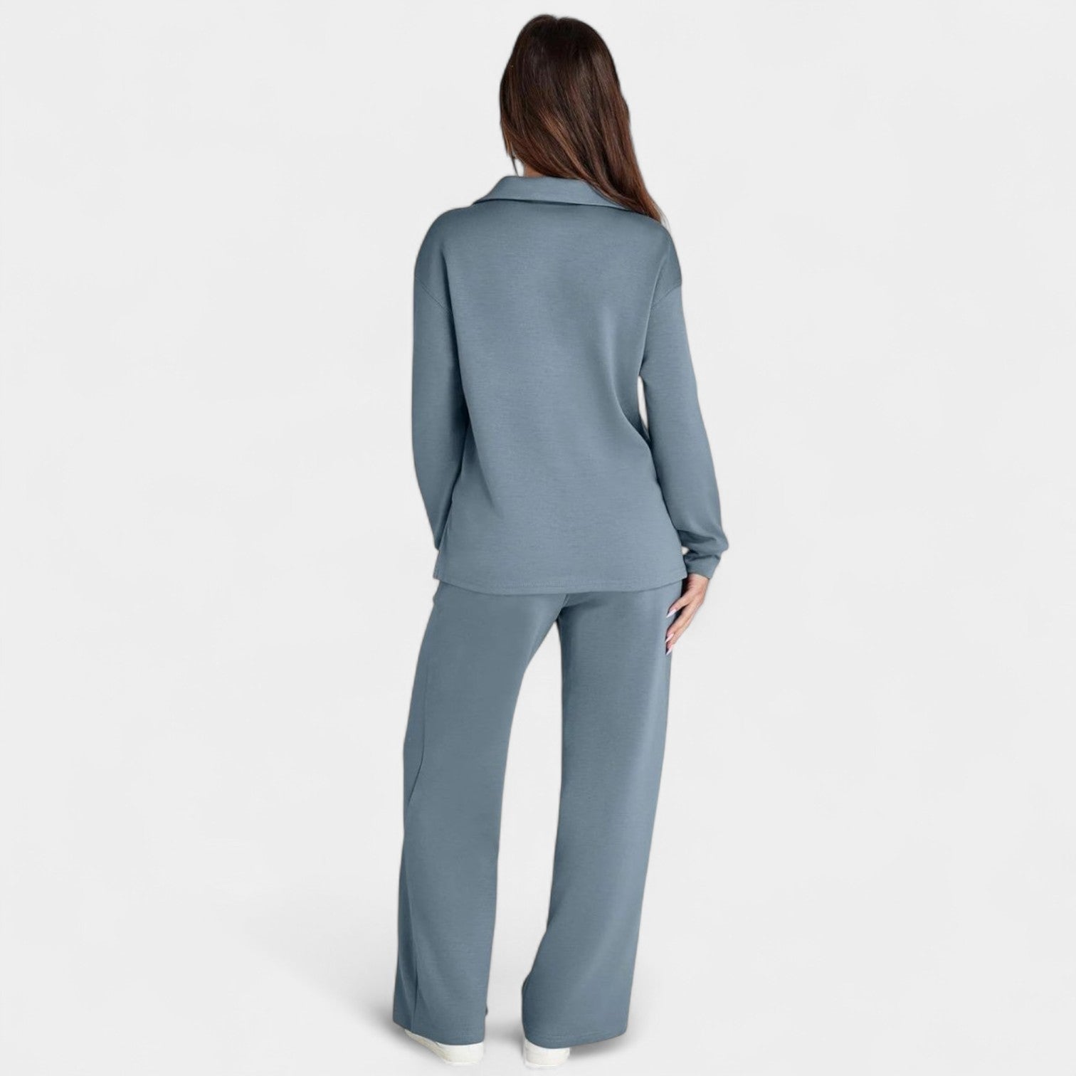 Zestaw Jitka łączy styl i komfort w doskonale dopasowanym dwuczęściowym komplecie. Jest lekki, wszechstronny i zaprojektowany tak, aby dodać Ci pewności siebie – niezależnie od tego, czy jesteś w drodze, na kawie z przyjaciółmi, czy cieszysz się spokojnym dniem w domu.