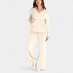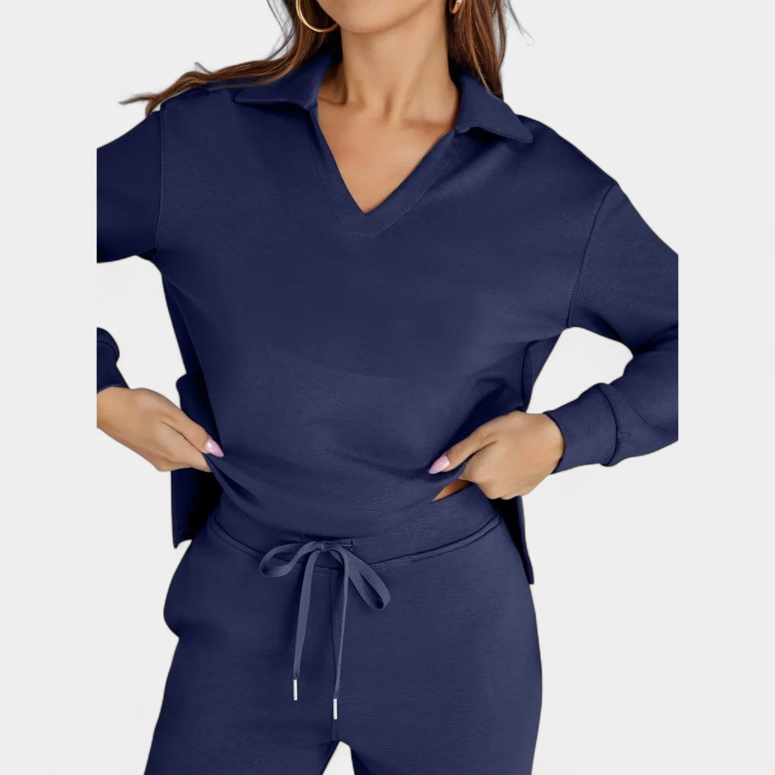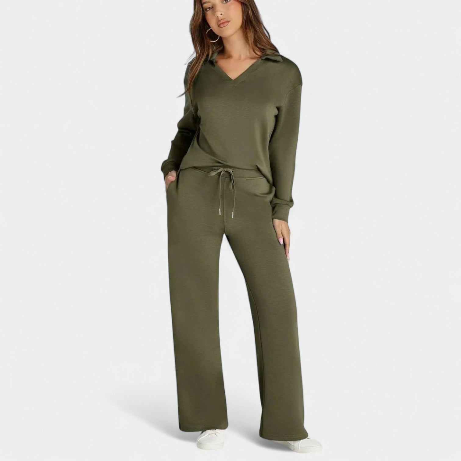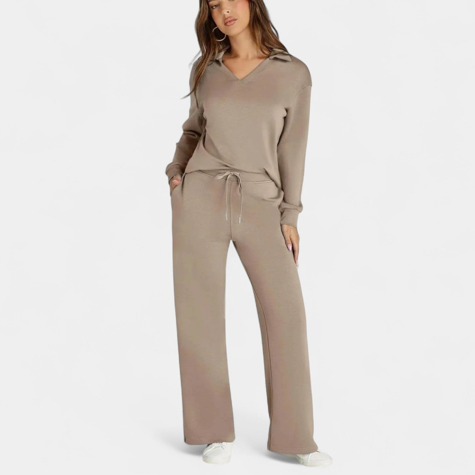 Zestaw Jitka łączy styl i komfort w doskonale dopasowanym dwuczęściowym komplecie. Jest lekki, wszechstronny i zaprojektowany tak, aby dodać Ci pewności siebie – niezależnie od tego, czy jesteś w drodze, na kawie z przyjaciółmi, czy cieszysz się spokojnym dniem w domu.