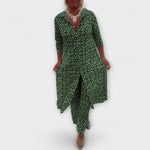 Podnieś swój styl z elegancją geometryczną Camilli, czarującym zestawem, który łączy odważne wzory z beztroską elegancją. Idealny na nieformalne wyjścia i stylowe wydarzenia, ten zestaw zapewnia, że wyróżnisz się z gracją.