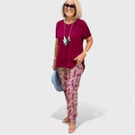 Ten dwu-częściowy zestaw to doskonałe połączenie elegancji i komfortu. Jego lekki i przewiewny materiał jest przyjemny w dotyku i zapewnia, że będziesz czuć się świetnie przez cały dzień. Pięknie uformowany krój z szerokimi spodniami i stylową bluzką tworzy wyrafinowaną, a jednocześnie swobodną sylwetkę, która pasuje na każdą okazję.
